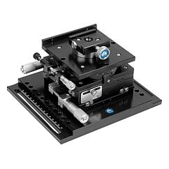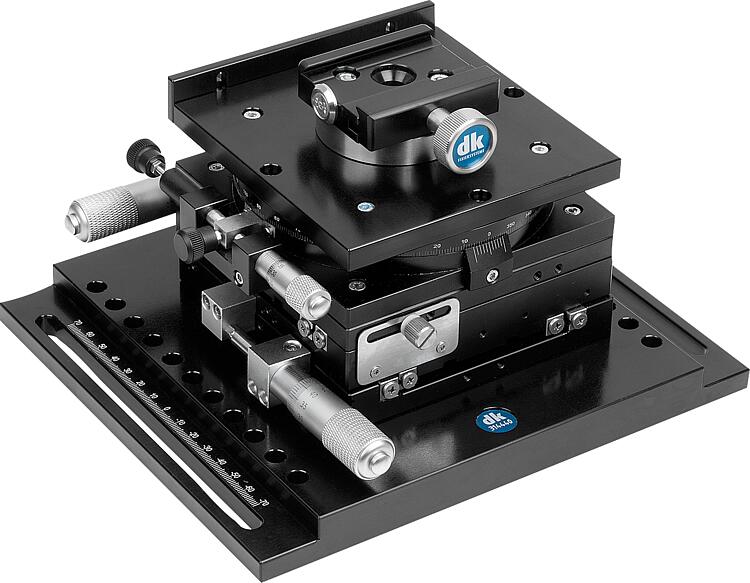粗调可以旋转 360°。精调则为每次旋转 0.33°。通过夹紧实现固定和固定定位。 这是一款紧凑型模型,因此无需使用多个模块来定位待测工件。