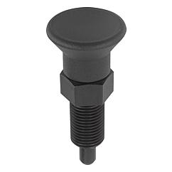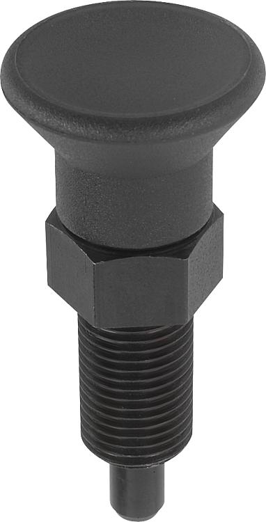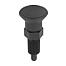 黑灰色 RAL7021 热塑性塑料蘑菇头把手。提示:分度销用于固定工件防止侧向位置移动。只有将顶销拔出后才能移动到新位置。根据要求:特殊类型。