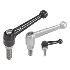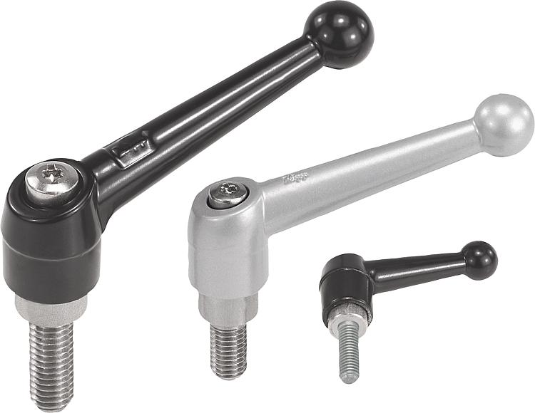 06431 inch带外螺纹的压铸锌锁紧手柄,黑色和银色,不锈钢螺纹嵌入件 - inch |