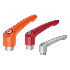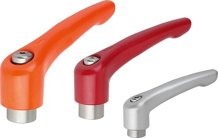 钢制部件,不锈钢 1.4305。 规格:把手有塑料涂层。 钢制,亮色。提示:标配供应: 橙色 RAL 2004,宝石红 RAL 3003,银色金属根据要求:其他内螺纹、颜色和特殊类型。 尺寸“H1”可按照需要提供其他长度,但需另行支付费用。特点: 下载此处为收集信息的 PDF: