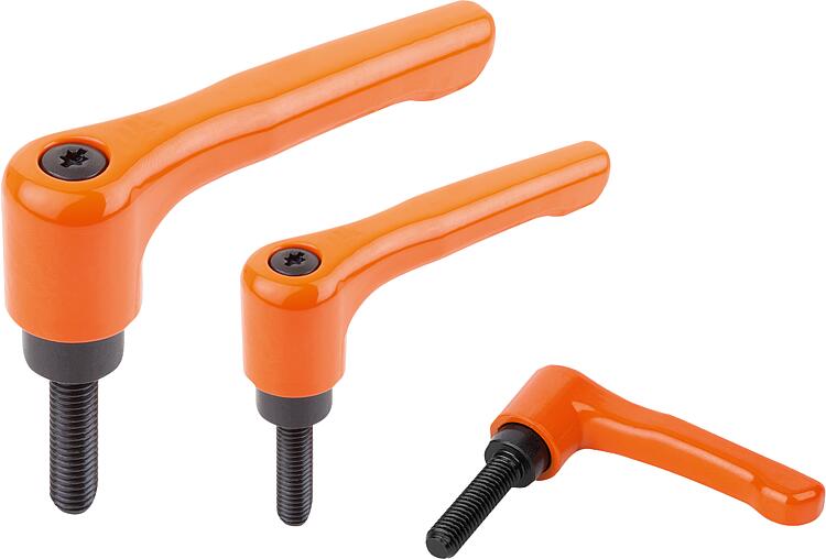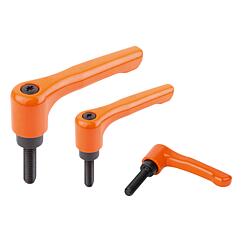06458 inch带外螺纹的扁平压铸锌锁紧手柄,哑光纯橙涂层,钢制螺纹嵌入件经氧化处理 - inch |