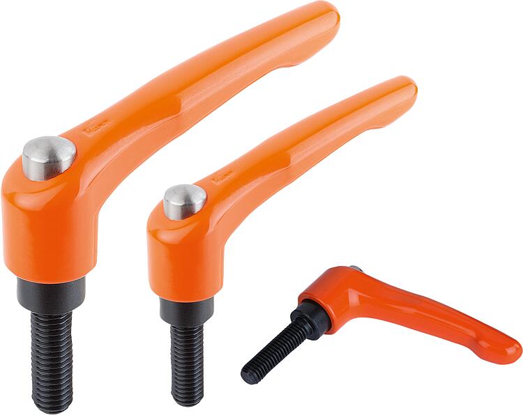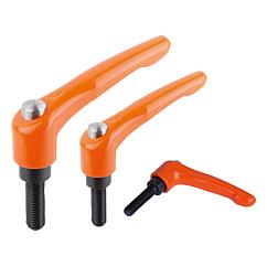 带外螺纹和保护罩的压铸锌锁紧手柄,哑光纯橙涂层,钢制螺纹嵌入件经氧化处理 - inch