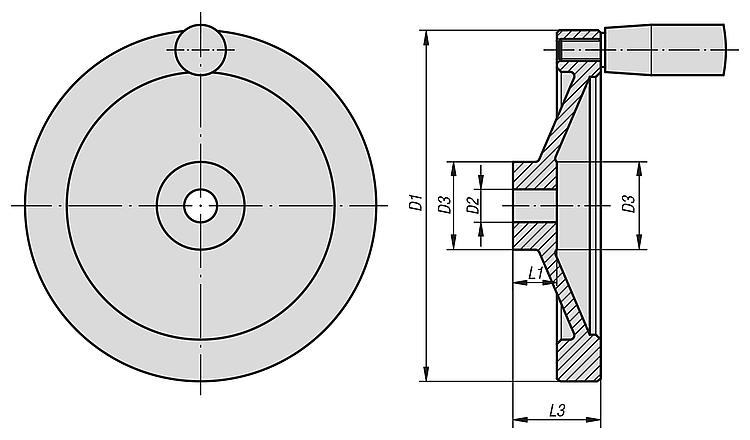 产品说明材料:铝制手轮盘。 手柄,热固塑料 PF 31-DIN 7708,黑色,轴部分为钢制,经镀锌处理。 规格:轮缘经车削和抛光处理。 提示:英制产品目录中的D2型以英寸为单位,所有其他类型以mm为单位。根据要求:内四角套筒或者经塑料涂层处理的手轮盘。特点: 下载此处为收集信息的 PDF: