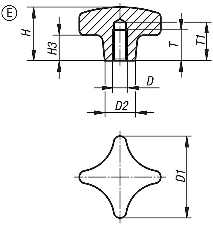 十字把手,类似 DIN 6335,灰口铸铁材质,B 型,贯穿孔 - inch