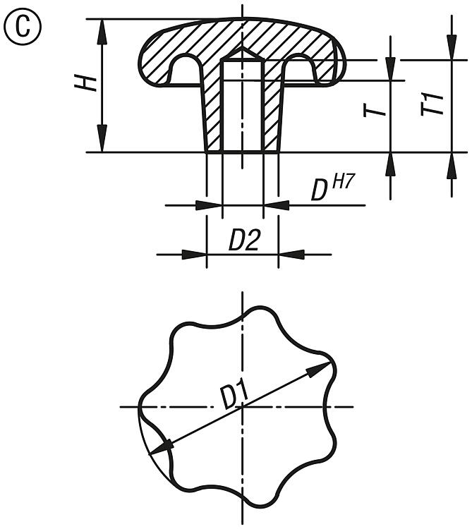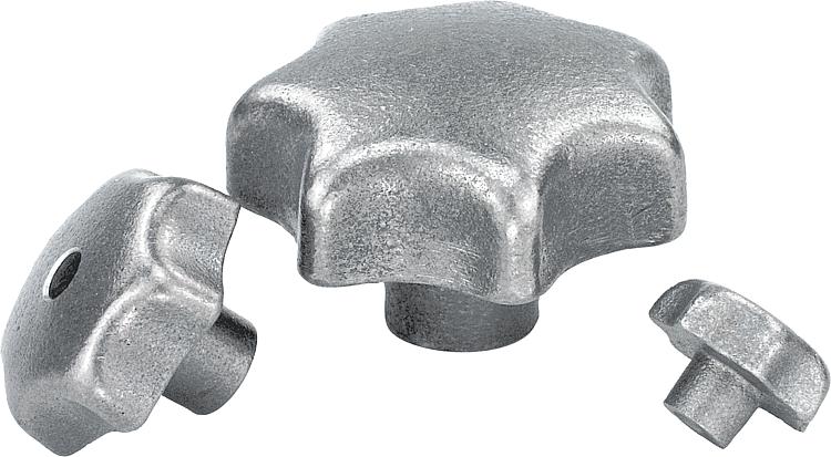 星形旋钮,类似 DIN 6336,灰口铸铁材质,B 型,贯穿孔 - inch