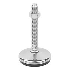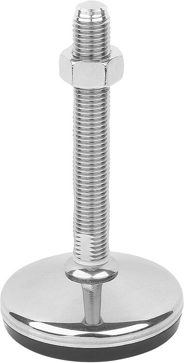 橡胶衬层 (NBR) 80 邵氏硬度,经 FDA 检测。 规格:不锈钢制底板经抛光处理。 钢制埋头螺栓,亮色。 硫化橡胶垫,黑色。提示:不锈钢脚杯,带有可旋转的丝杠和橡胶支承面。实心的橡胶衬层通过硫化反应与板材脚杯牢固相连。橡胶衬层的抓地力十分出色。它能起到缓冲作用并阻碍对地面的振动传输和冲撞。