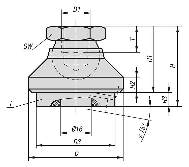 万向脚杯(不带减振装置)参见 07144。