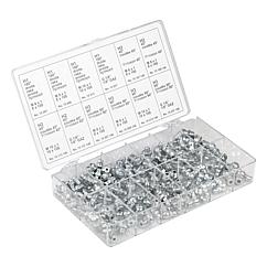 B 型锥形润滑油嘴 (45°) 符合 DIN 71412: 10 个 M6x1 10 个 M8x1 5 个 M10x1 5 个 G1/8''