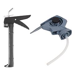 利用这种手动系统可用于黏度最高 30000 m Pa · s 的 0.01 至 0.4 ml 的 LOCTITE 螺栓防松胶和 LOCTITE 快干胶。此系统可在任何位置工作,不会滴落,并且优化了产品用量。此外,不需要任何清洁和连接供电或压缩空气。