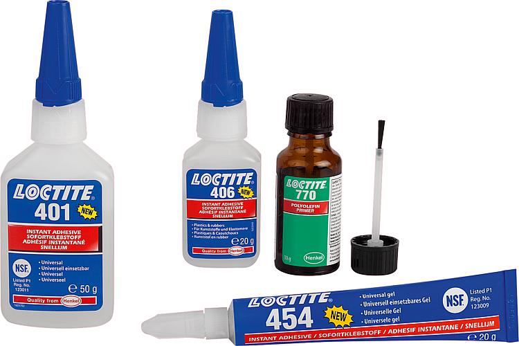 用于难以粘接塑料如聚乙烯 (PE) 和聚丙烯 (PP) 的瞬干胶 406(氰基丙烯酸酯)和 770 的塑料用组合粘接剂。
