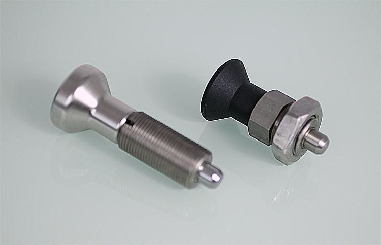 为确保高度的稳定性和耐腐蚀性,KIPP 锁紧柱塞由抗锈的钢和不锈钢制成。塑料制或不锈钢制蘑菇头把手易于手动操作,有锥形及圆柱螺栓。并且也为了毫无问题地安装钢板结构和薄壁部件,KIPP 因此研制了一款带平头螺母的特制螺栓。所有销长及螺栓直径为常规型号的均可购得。